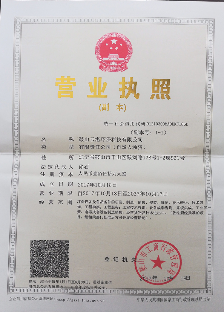 版权所有:鞍山云湛环保科技有限公司   地址:鞍山市千山区鞍刘路138号 营业执照